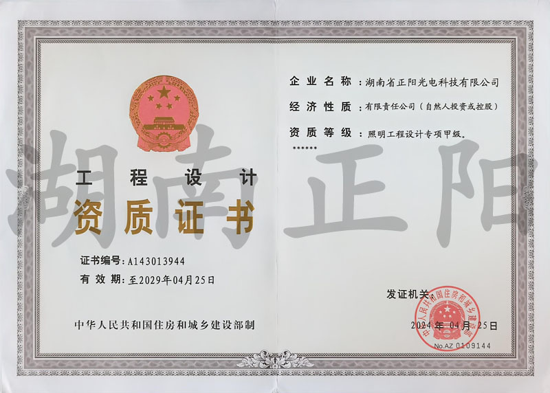 • 照明工程設(shè)計專項甲級資質(zhì)